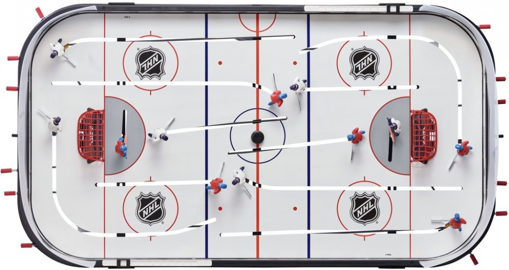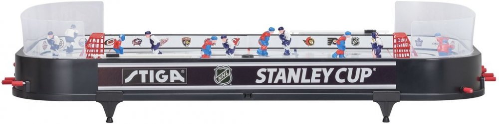 Stolní hokej STIGA s licencí NHL. Hráči hrají v dresech týmů severoamerické NHL. Na kluzišti jsou nálepky NHL. Na mantinelu jsou vyobrazeny znaky týmů hrajících NHL. V základní výbavě tohoto balení jsou týmy Detroit Red Wings a Toronto Maple Leafs.. Jedinečnost hokejů Stiga