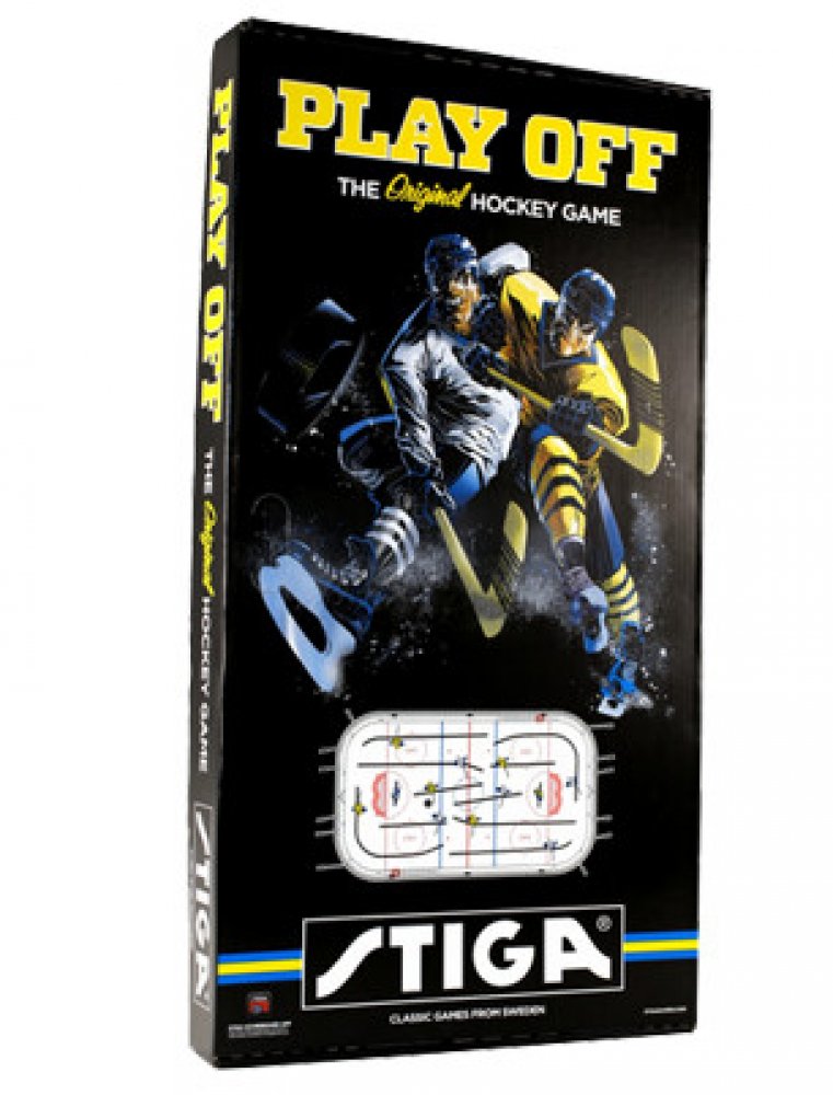 Stiga hokej Play off je nejprodávanější hokej ve své kategorii. Je nejen dokonale propracovaný, ale i dostatčně robustní pro hru s opravdovým zápalem. Hráči jsou v národních barvách týmů, které běžně hrají MS. Levý útočník může zajíždět až za branku soupeře a střední útočník se může vracet až na vlastní polovinu kluziště. Hráči mají kovové hokejky, které umožňují osobní souboj...