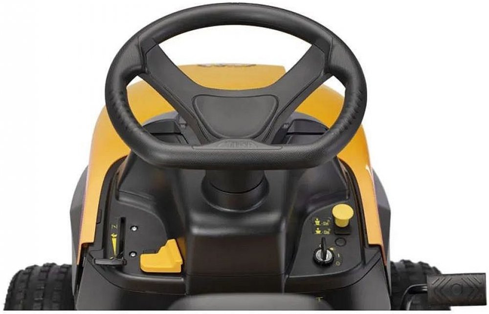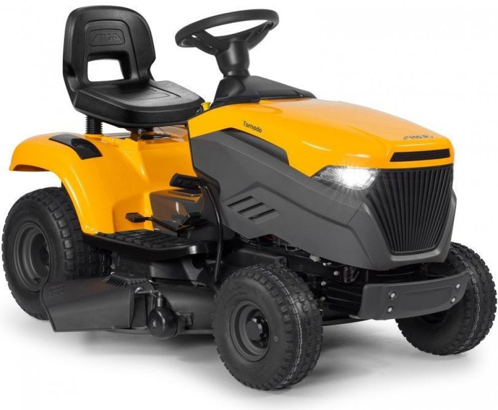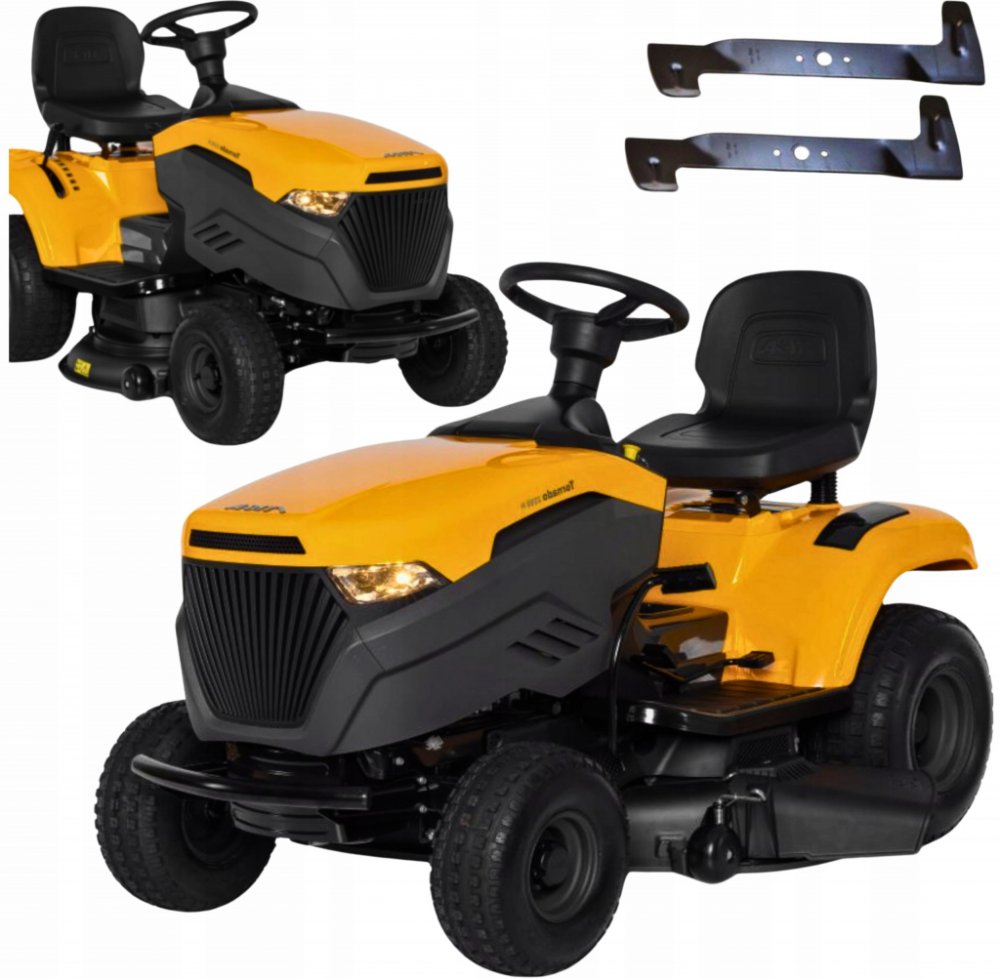 Zahradní traktor s motorem STIGA ST 450 o objemu 432 cm3 a s 98 cm žacím ústrojím se dvěma noži.