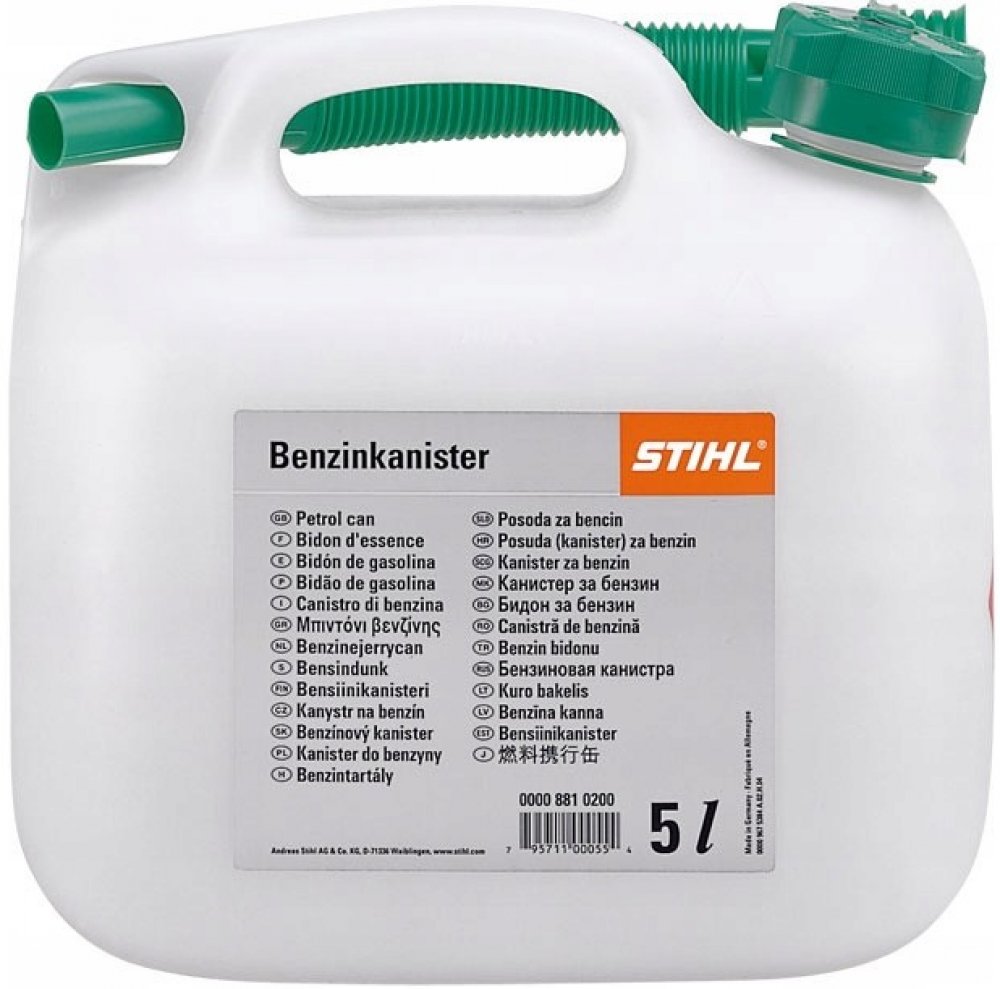 Robustní kanystry na benzín STIHL jsou ideální pro profesionální i soukromé uživatele, kteří potřebují bezpečně skladovat a přepravovat palivo, například palivovou směs STIHL MotoMix. Plastové nádoby mají certifikaci UN, což umožňuje jejich použití při přepravě nebezpečných látek, jako je palivo pro motorové pily nebo benzínové sekačky STIHL, po veřejných komunikacích. Kanystry jsou vybaveny standardní výlevkou, kterou lze snadno našroubovat na všechny velikosti nádob.