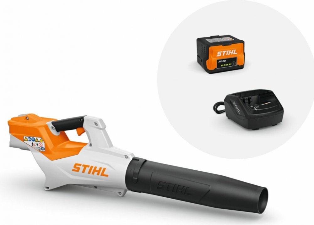 STIHL BGA 50.0 + AK 20 + AL 101 (BA05 011 5917) Sada akumulátorového fukaru na listí a nečistoty, baterie a nabíječky, vhodná pro čištění malých až středně velkých ploch, jako jsou terasy, garáže, chodníky a trávníky. Tento foukač disponuje nastavitelným výkonem, vyměnitelnou trubicí a závěsným okem.