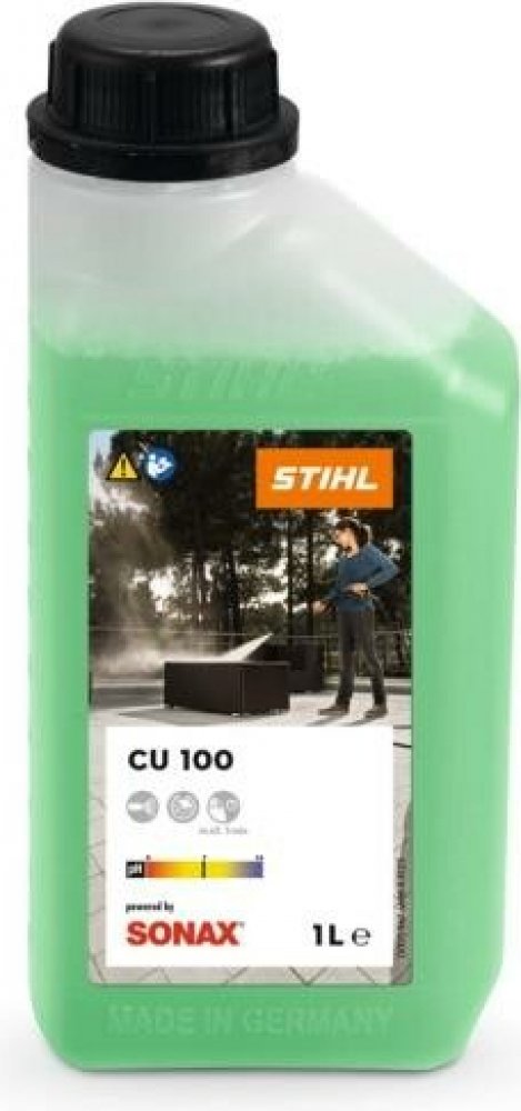 STIHL CU 100 (0782 516 9100) Univerzální čisticí prostředek pro použití s vysokotlakými čističi na odstranění různých nečistot z tvrdých povrchů. Tento saponát je vhodný na čištění lakovaných, kovových, kamenných, plastových a skleněných ploch.