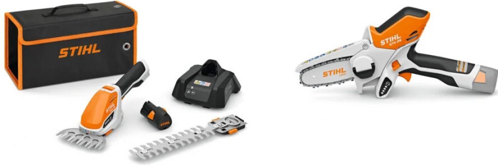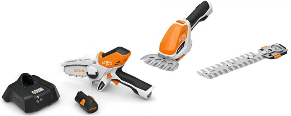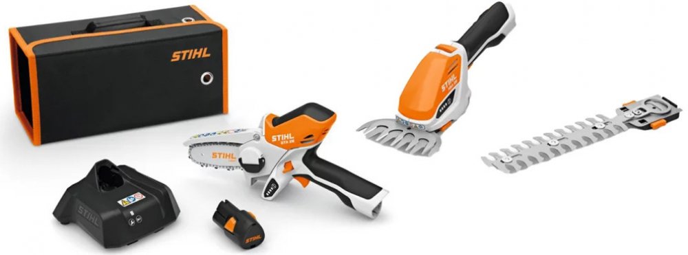 Připravili jsme pro Vás sadu oblíbeného aku nářadí STIHL řady AS, minipilu STIHL GTA 26 a nůžky HSA 26 včetně nabíječky a akumulátoru. Mnohostranně použitelná akumulátorová minipila STIHL GTA 26. Efektivní při řezání stromů a keřů včetně zpracování zelených zbytků nebo při dřevostavbách. S pilovým řetězem 1/4“-PM3 pro vysoký řezný výkon a energické řezání. Neklouzavá ovládací rukojeť pro dokonalou ergonomii. Výměna řetězu bez použití nářadí, pružný ochranný kryt pro bezpečnou práci, s ukazatelem stavu nabití. Lehké a komfortní akumulátorové nůžky na křoviny a trávu STIHL HSA 26 SET. Nůžky jsou určené ke stříhání a úpravě menších, stálezelených živých plotů a drobnolistých okrasných dřevin a zastřihávání okrajů trávníku. Nůž na trávu a nůž na stříhání keřů součást balení Tato sada mini pily STIHL GTA 26 a nůžek HSA 26 - SET obsahuje: mini pila GTA 26 nůžky HSA 26 - SET 1 x vodicí lišta Light, 10 cm 1 x pilový řetěz 1/4"-PM3, 10 cm 1 x Multioil Bio, 50 ml 1 x lithiový akumulátor AS 2 1 x nabíječka AL 1 1 x nůž na stříhání keřů, řezná délka 20 cm 1 x nůž na stříhání trávy, šířka záběru 12 cm 1 x přepravní taška pro HSA 26 Klíčové vlastnosti aku ruční pily STIHL GTA26: Efektivní pilový řetěz Pro efektivní výkon je minipila osazena řetězem STIHL ¼"-PM3 LED signalizace stavu nabití Díky snadno čitelnému zobrazení stavu nabití v podobě LED je uživatel vždy informován o zbývající kapacitě baterie pouhým stisknutím tlačítka. Lithium-iontový akumulátor Pro dlouhou dobu provozu a maximální výkon je tento model provozován s vysoce kvalitní lithium-iontovou baterií. Není součástí balení. Beznástrojové napínání řetězu Díky krytu řetězového kola s křídlovou maticí je výměna řetězu zcela nekomplikovaná a beznástrojová. Ruční napínání řetězu není nutné. Flexibilní ochranný kryt Z bezpečnostních důvodů je řetěz zakryt asymetrickým ochranným krytem, který lze otočit o 90 °. Uživatel má vždy řez v pohledu. Kolejnici lze použít v plné délce. Klíčové vlastnosti nůžek STIHL HSA 26 - SET: protiskluzová rukojeť snadná výměna nožů bez použití nářadí ukazatel stavu nabití praktická přepravní taška s možností zavěšení na zeď kompatibilní s řadou akumulátorové techniky STIHL AS - Systém - Bezpečnostní pokyny jsou obsaženy v návodu k použití stroje. Ke stažení zde. - Názorné informace o bezpečném použití naleznete na tomto instruktážním videu. - Odborné poradenství na naší kamenné prodejně. - info linka tel: 317 722 089 (PO - PÁ: 8:30 - 16:30) - e-mail: info@sekacky-pily.cz