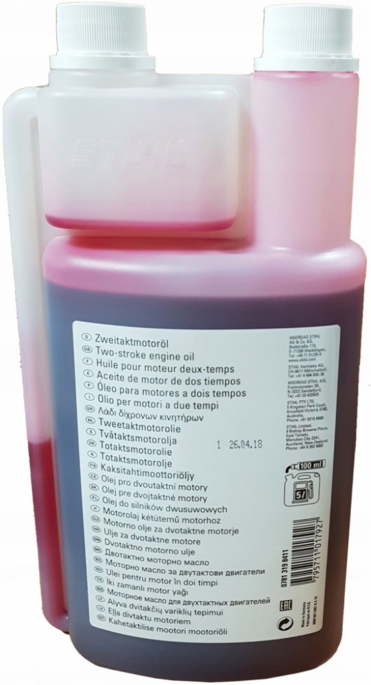 Motorový olej STIHL HP Ultra pro dvoutaktní motory vyniká velmi dobrými samomíchacími vlastnostmi. Zda je součástí směsi, to snadno zjistíte díky intenzivní červené barvě.
