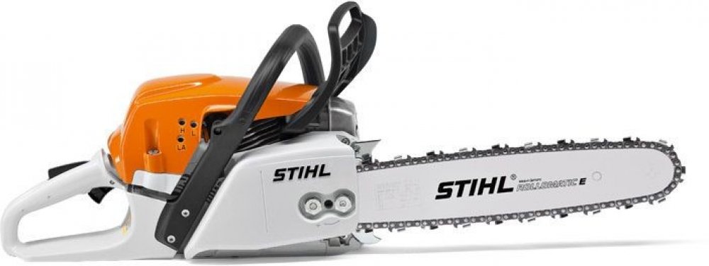 Stihl univerzální 40 cm 5.6 kg benzínové 9500 ot/min vysoce výkonná 2800 W 116 dB 55.5 cm3 3/8" pro silná polena (nad 35 cm) určeno pro nepřetržité intenzivní použití středně těžké (4-6 kg) se středně těžkou údržbou