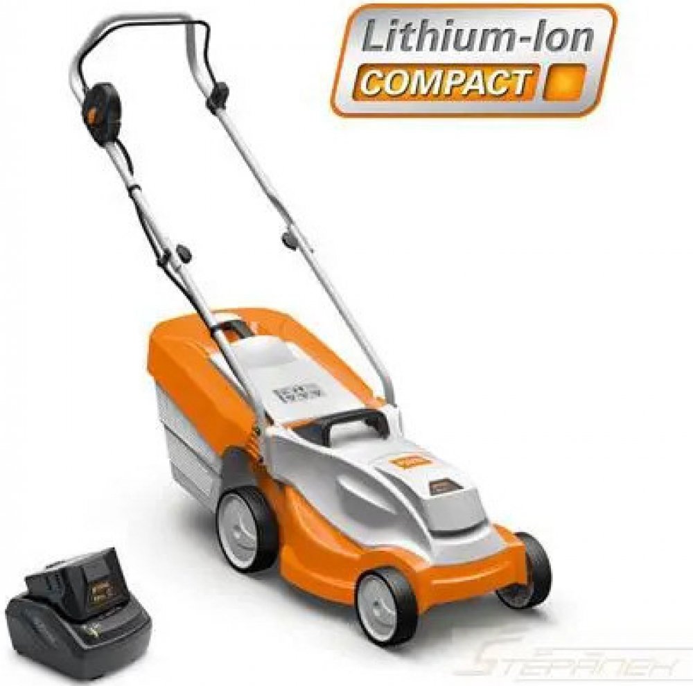 Stihl 44 cm 89 dB plastové 14 kg bez pojezdu akumulátorové rotační 30 l 900 m2 36 V 3.3 Ah elektromotor 3400 ot/min 65 mm 1 s plastovým košem