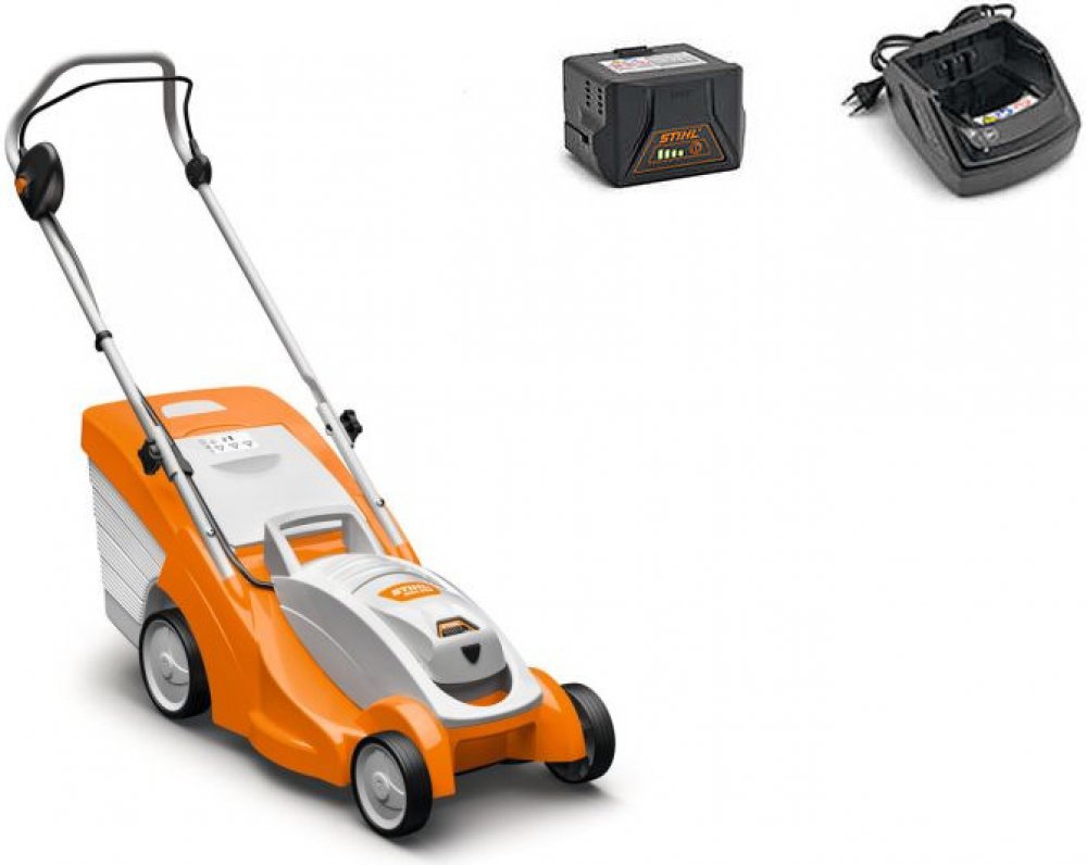 Stihl 37 cm plastové 14 kg bez pojezdu akumulátorové 40 l 250 m2 900 W 36 V 4 Ah elektromotor 3.35 ot/min 70 mm s plastovým košem