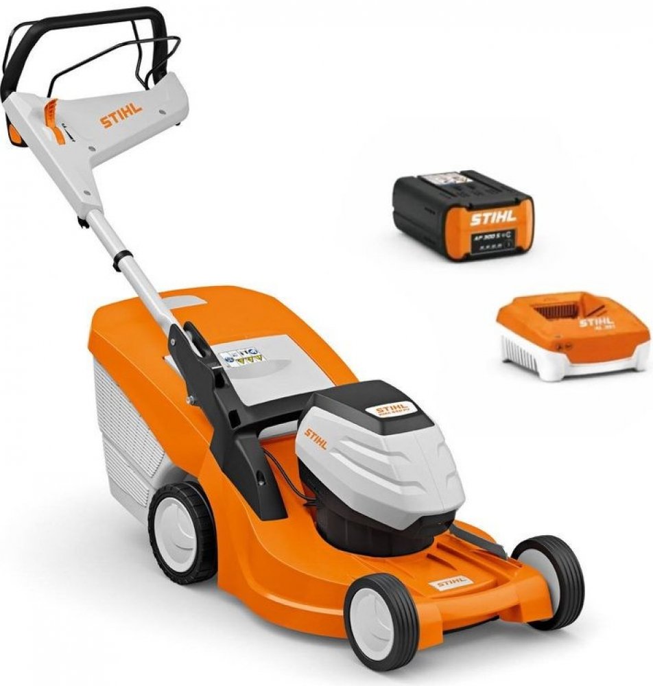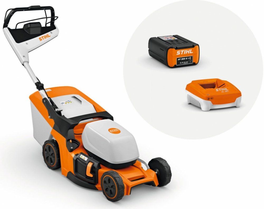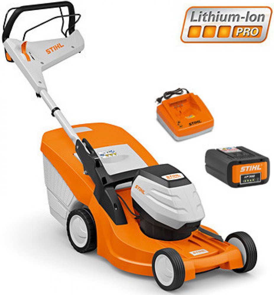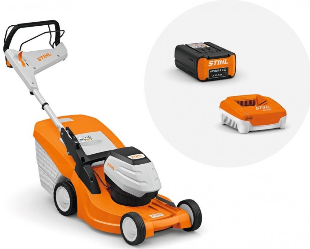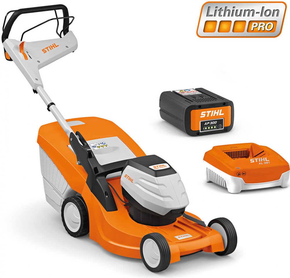 Výkonná akumulátorová sekačka se šířkou záběru 46 cm pro středně velké plochy trávníku. Centrální nastavení výšky sečení a výškově nastavitelné a sklopné komfortní vodicí držadlo. S aerodynamickým nožem pro delší dobu provozu. Elektrický pohon kol Vario pro komfortní práci. Maximální rychlost práce je možno nastavit páčkou na komfortním vodicím držadle variabilně v šesti stupních. Se dvěma aktivními prostory pro akumulátor k sekvenčnímu vybíjení. Sada RMA 448 PV tvoří akumulátor AP 300 a nabíječku AL 300.