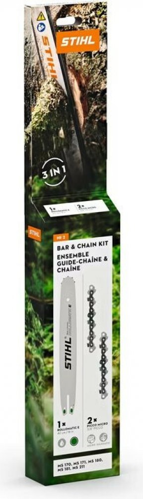 Sestava STIHL Cut Kit 2 umožňuje aktivně zabezpečit, aby byl řezný výkon vaší benzínové pily STIHL MS 162, STIHL MS 170, STIHL MS 171 nebo STIHL MS 172 trvale na vysoké úrovni. S touto sadou můžete snadno a sami vyměnit pilový řetěz a vodicí lištu, které jsou speciálně navrženy pro vaši řetězovou pilu STIHL. Při instalaci vám pomůže náš průvodce výměnou řezného vybavení, který je k dispozici prostřednictvím QR kódu na obalu sady Cut Kitu.