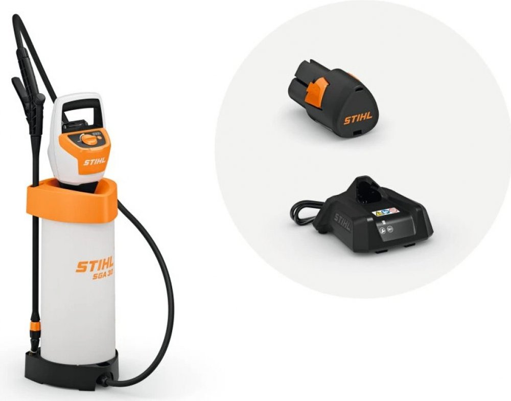 Akumulátorový postřikovač STIHL SGA 30 v setu s akumulátorem a nabíječkou ze systému STIHL AS byl navržen pro každého, kdo pečuje o rostliny, keře či záhony na zahradě. Je ideální pro aplikaci tekutých hnojiv, přípravků proti škůdcům, plísním či prostředků na hubení plevele. SGA 30 zaručuje rovnoměrné rozptýlení postřikované směsi, a to po celou dobu provozu, takže ošetření rostlin je přesné, rychlé a úsporné.