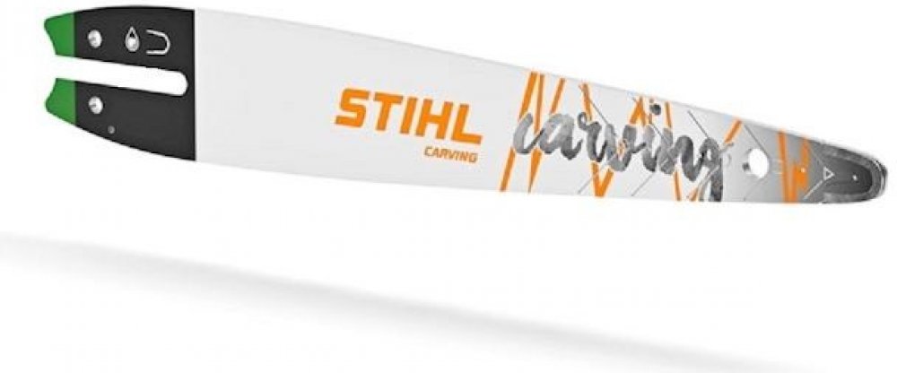 Carvingová vodicí lišta je ideální pro řezbáře , arboristy a profesionální stromolezce . Díky značkám na liště můžete vždy přesně určit, kde se špička lišty nachází. Protože špička lišty řeže velmi úzké poloměry, můžete přesně realizovat řezy s jemnou geometrií.