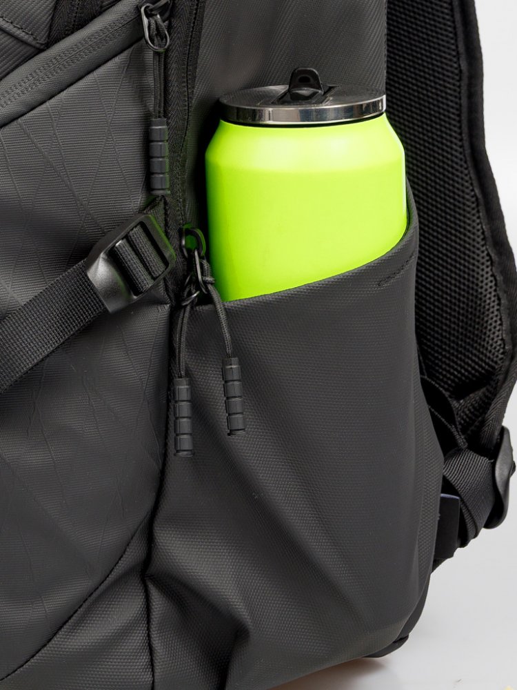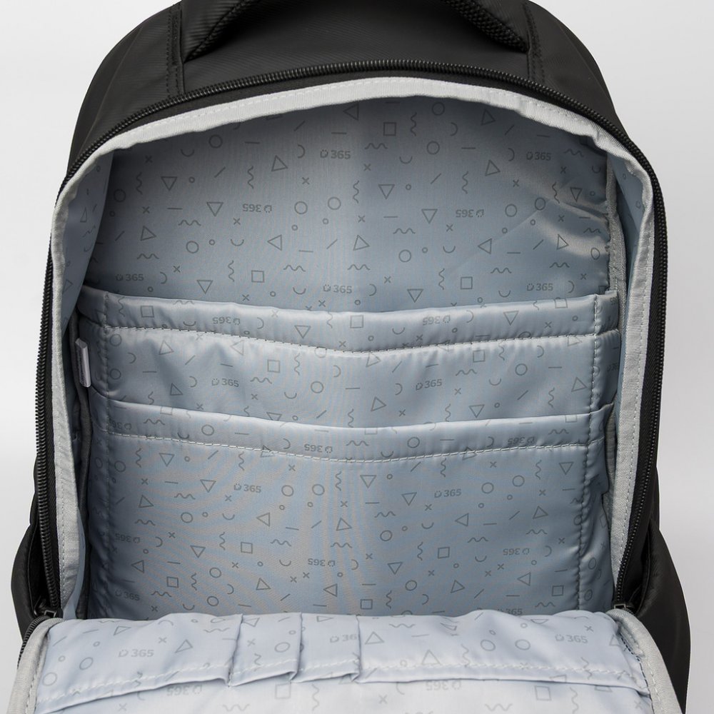 VNITŘNÍ USPOŘÁDÁNÍ – prostorný interiér s rozděleným úložným prostorem pro uschování různých předmětů, boční kapsy na láhev s vodou či deštník. Kapsa na notebook