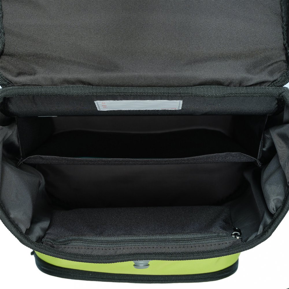 VNITŘNÍ USPOŘÁDÁNÍ - Hlavní vnitřní komora je rozdělená látkovou přepážkou pro lepší uložení pomůcek. V přední části komory je kapsička pro uložení drobností. Přední kapsa aktovky je určena pro svačinový box nebo penál.