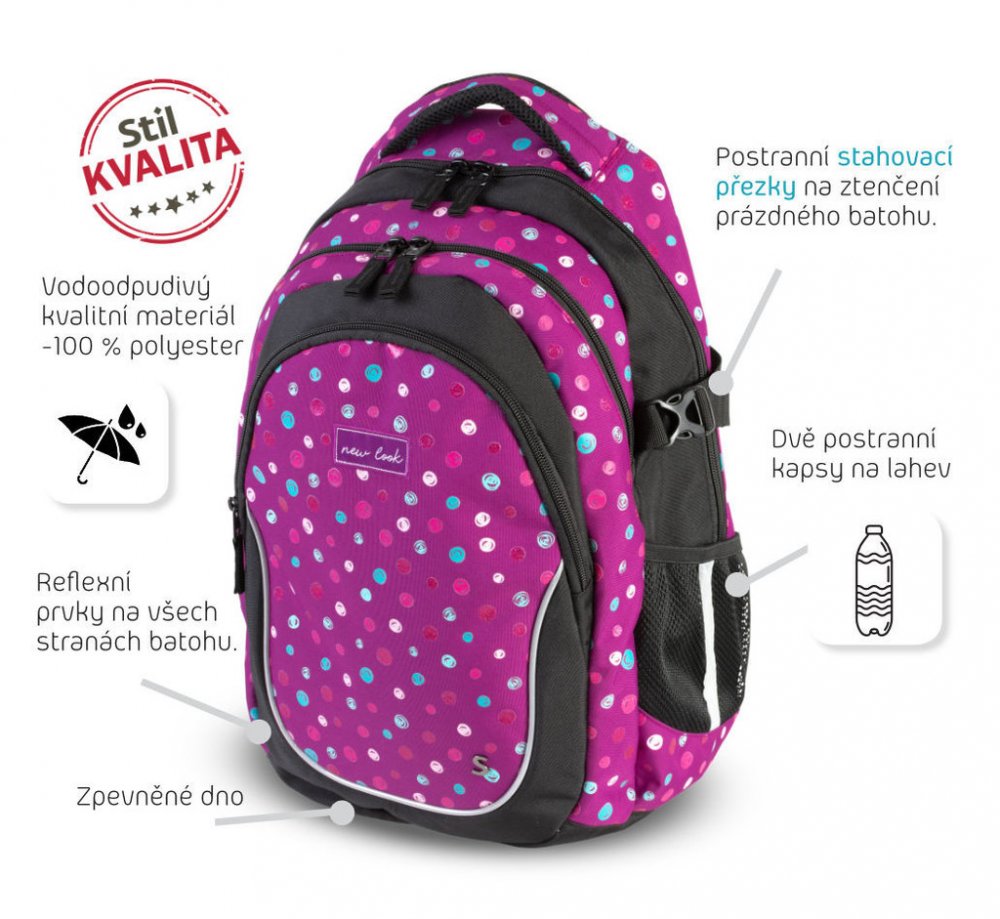 Školní batoh je vhodný pro 2. stupeň ZŠ a jako studentský batoh pro středoškoláky.