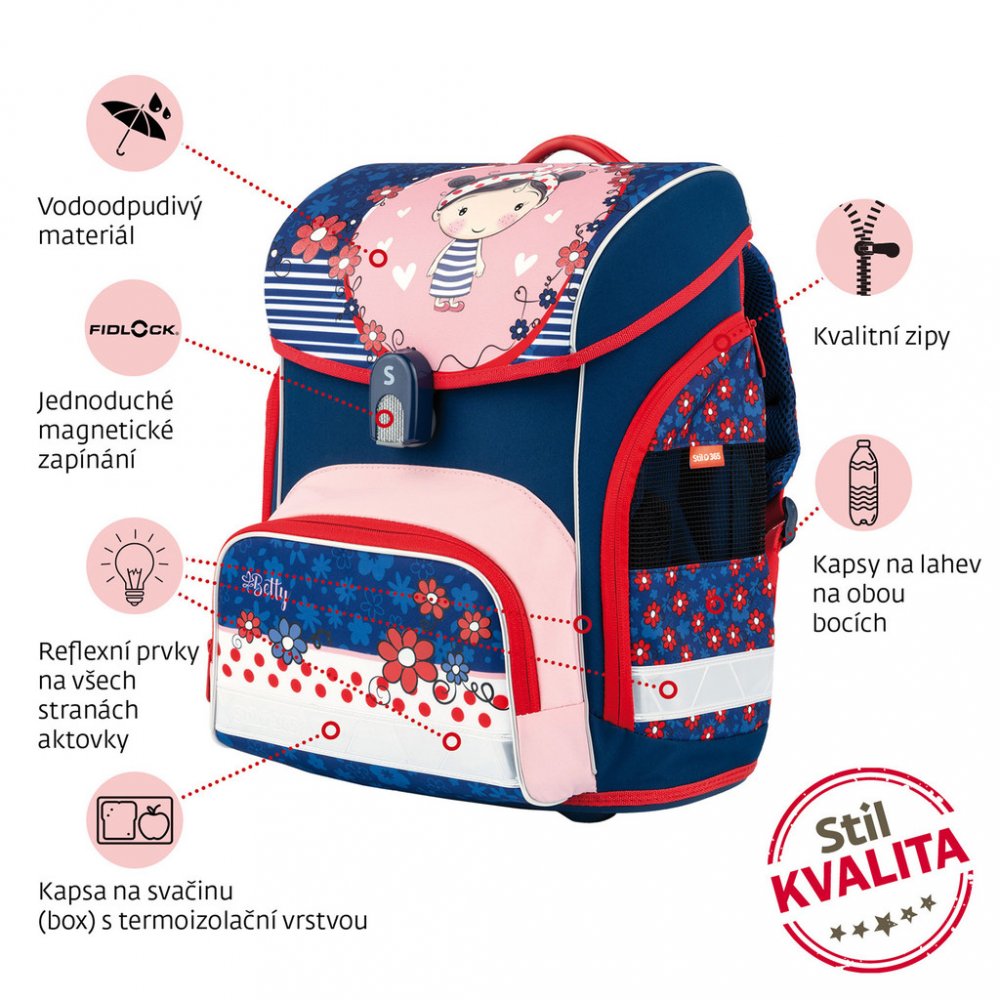 BEZPEČNOST - bezpečnostní prvky jsou velmi důležité, proto je aktovka vybavena na všech stranách reflexními pásky, které zaručí lepší viditelnost a bezpečnost dítěte ve tmě.