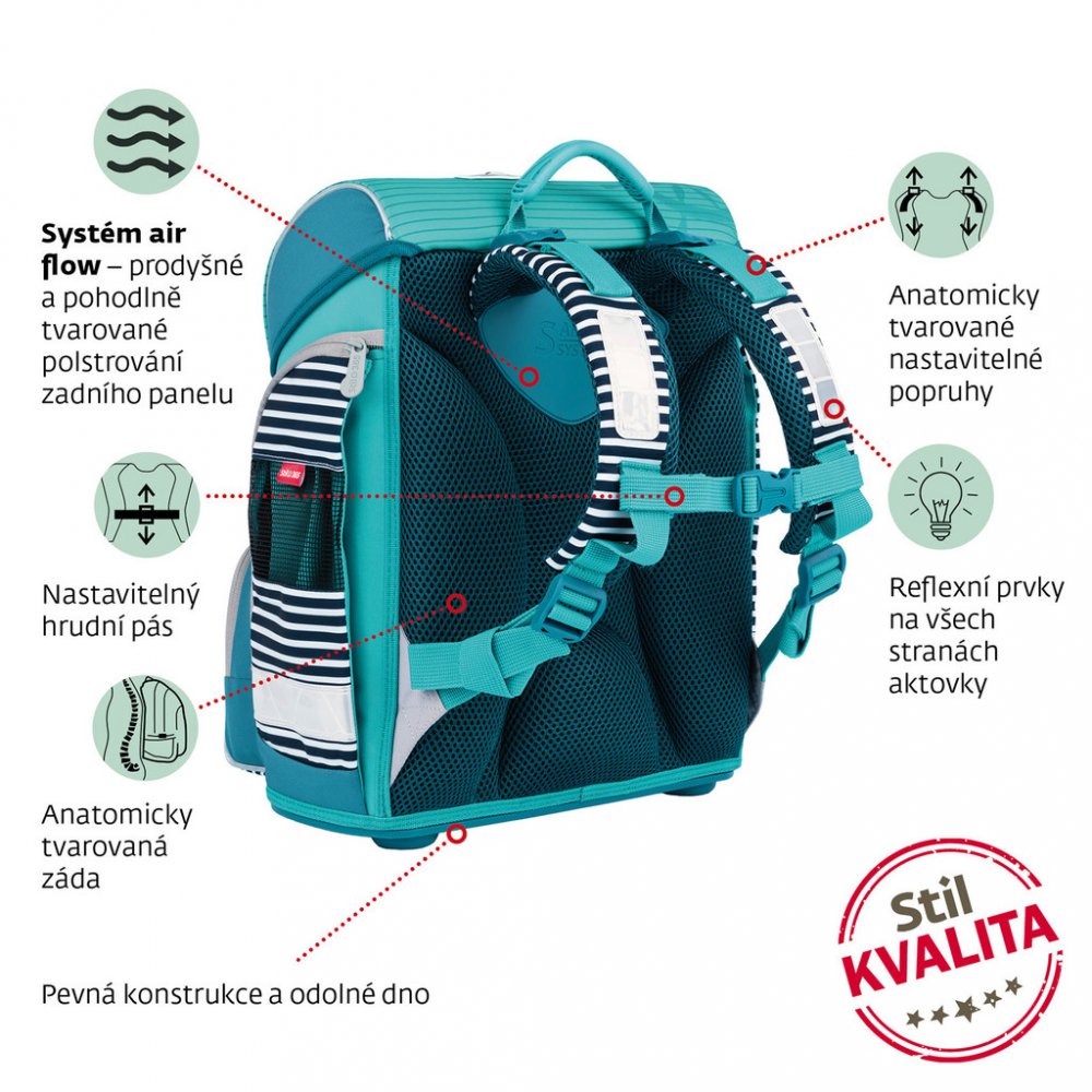 Aktovka je klíčovou součástí vybavení každého školáka. Nejen, že bude dělat parádu vašemu potomkovi po celý rok, ale rovněž podporuje dobré držení těla. Aktovka do školy Stil vyniká jak pěkným designem, tak nadprůměrně kvalitním vyhotovením. Její hmotnost je 1 kg, je tak velice lehká a snižuje celkovou zátěž pro dítě. Zároveň je značně pevná a zvládne unést až 7 kg. Její anatomicky tvarovaná záda ...