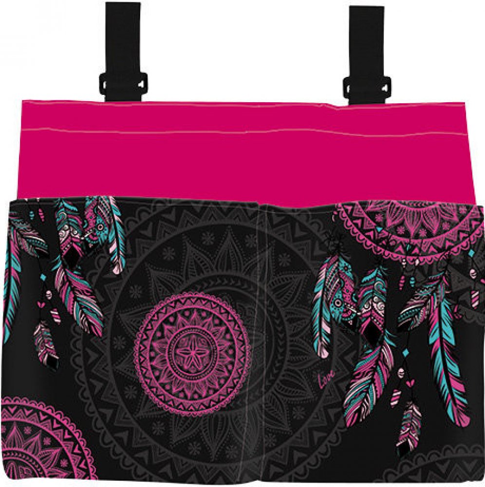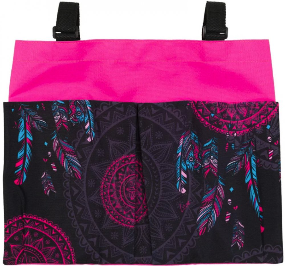Pomocí suchého zipu se připevní ke školní lavici, k uložení slouží jedna velká a dvě menší kapsy.