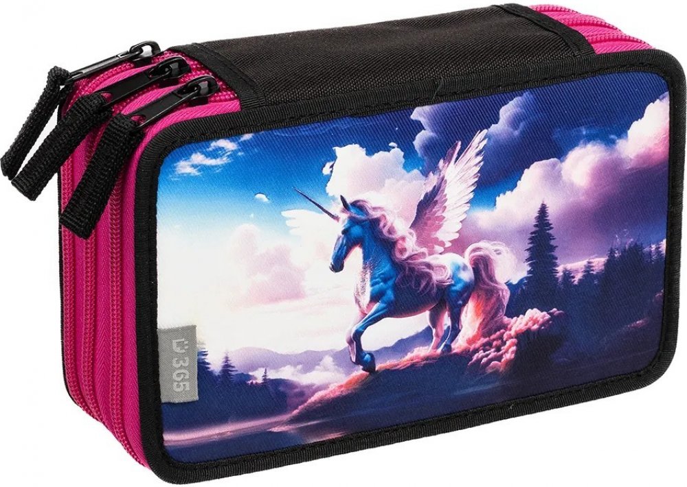 Třípatrové penály pojmou nejvíce psacích a školních potřeb. První patro obsahuje 8 gumiček na pastelky, 3 širší gumičky na ořezávátko i gumu a nově i síťovanou kapsičku s pružným lemem na uložení drobností. Ve druhém patře je umístěna průhledná kapsička na rozvrh a 10 pevných gumiček na psací potřeby různých velikostí. Třetí část penálu nabízí navíc ještě dalších 15 gumiček na tužky a 2 další šiřší gumičky pro různé potřeby. Dokonale barevně sladěný design s aktovkou či batohem je samozřejmostí.