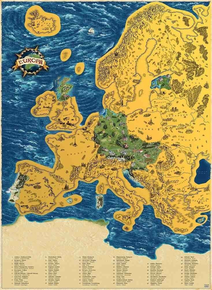 Exkluzivní stírací mapa Evropy Dleuxe vám ukáže více než stovku nejvýznamnějších památek, významné řeky, pohoří, města, jezera, moře, zálivy, ostrovy ...Každá země na mapě je v příslušném jazyce. Moře v angličtině. Legenda: obsahuje místní + anglický jazyk země + hl. města.Každá památka a bod na mapě je věrným vyobrazením svého originálu, a je vykreslená do detailů.Navštívené místa si na naší mapě...