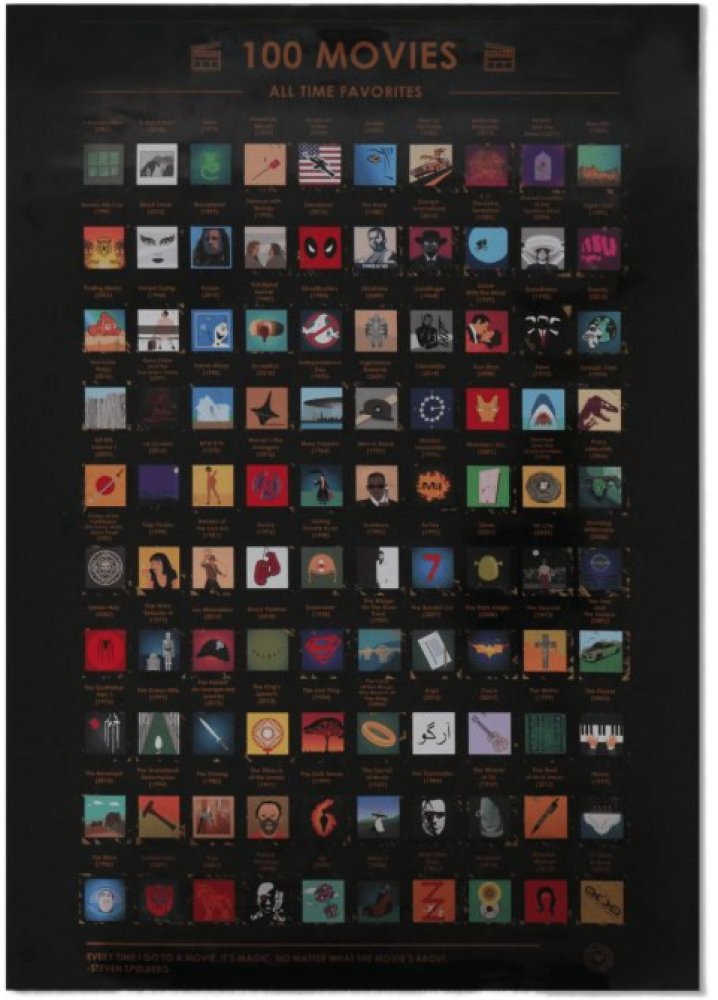 Stírací filmový plakát – 100 filmů, které musíte vidět