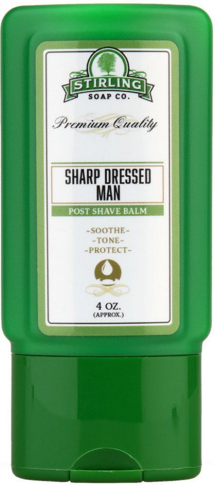 Nemastné balzámy po holení Stirling Soap přináší uživatelům mokrého holení nejen příjemnou vůni, ale také antioxidační, protizánětlivé a stahující vlastnosti díky vilínu. Regenerační účinky na podrážděnou pokožku dodává obsažené aloe vera. Glycerín a další rostlinné oleje vysušenou pokožku hydratují a současně s vitamínem E i vyživují.Co nejvíce přírodních složek v produktech - to je filozofie rodinné firmy Stirling Soap Co. z Arkansasu, vlastnící řemeslnou manufakturu na kosmetiku. Jejich zásadou je poctivá pánská kosmetika v menším množství.Vůně balzámu po holení Sharp Dressed Man je chladnější a drsnější'. Její vonná kompozice je složená z verbeny, lístků fialek, kosatce, santalového dřeva a ambry. Inspirovaná parfemovanou vodou Creed Green Irish Tweed, kterou si oblíbili Robert Redford i Clint Eastwood.Obsah 118 ml. Vyrobeno v USA.