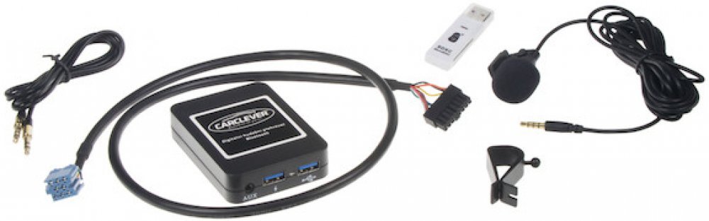 Digitální hudební přehrávač s Bluetooth k autorádiím Peugeot / Citroen, umožňuje přehrávání hudby z USB / AUX / Bluetooth přímo na originálním autorádiu.Součástí balení přehrávače je i externí mikrofon, takže lze využívat i jako Bluetooth handsfree sadu. Adaptér se ovládá originálními ovládacími prvky přímo na autorádiu nebo multifunkčním volantu, včetně přijímání hovorů přes Bluetooth.Velmi rychlá a jednoduchá instalace k autorádiu přes konektor CD měniče, připojení bez ztráty kvality zvukového signálu. Přehrávač obsahuje i druhý USB konektor, který je určen pro dobíjení telefonu a jiných přenosných zařízení (5V /2A).V porovnání s adaptéry jiných výrobců podporuje tento adaptér více hudebních formátů, podporuje větší USB paměti (až 32GB), má vestavěný Bluetooth modul a velmi rychlou odezvu při vložení USB paměti.Adaptér je ideální alternativou originálního CD/DVD/USB přehrávače a hands free sady! Technické parametry:•Bluetooth modul verze 4.0 - podpora formátů A2DP, AVRCP, HFP, SPP, GATT, ATT•nejmodernější verze Bluetooth čipu AP8064 s vynikající kvalitou zvukového přenosu•podpora hudebních formátů MP3, WMA, FLAC (8/16/24 bit), ACC, MP4, M4A, WAV, AIF, AIFC, MP2•AUX konektor 3,5 mm JACK (pro připojení MP3 přehrávače / iPodu...)•externí mikrofon s 3,5 mm jackem•čtečka SD a microSD karet v balení•2x USB konektor (1x pro dobíjení 5V/2A)•podpora USB pamětí až do 32GB•rozměry jednotky: 83 x 60 x 18 mm•délka připojovací kabeláže: 80 cm Kompatibilní autorádia:•RD3 od VDO/Blaupunkt, RD3 Clarion modely: PU1633A / PU1646A / PU2184A / PU2294A / PU2295A / PU2380B / PU2473A a RB3 od VDO, RM2 radia Clarion ve vozech Peugeot a Citroen s MINI ISO konektorem Poznámky•Pokud v autě nebyl CD měnič je nutno jej povolit diagnostikou PP2000.•U některých vozidel je navíc nutné také diagnostikou povolit zobrazení CD měniče na displeji.•Odpojte před instalací autorádio od napájení. Podrobná kompatibilitaCitroën C3 2002–2004Citroën C8 do roku výroby 2004Citroën Xsara 2001-2005Peugeot 206 1998-2007Peugeot 206CC 2004–2007Peugeot 307 2002-2004Peugeot 307sw 2004-2005Peugeot 406 2002-2004Peugeot 407sw 2004-2005Peugeot 806 1997-2001Peugeot 807 2002–2004.