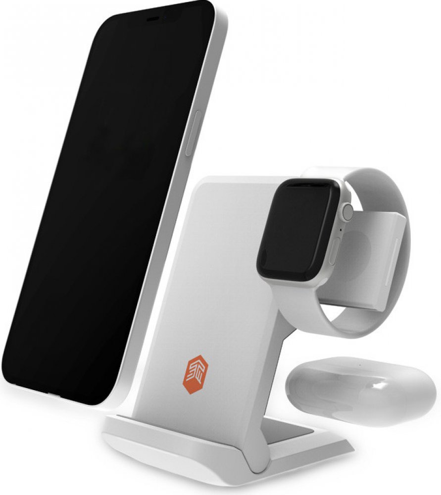 Cestovní verze nejlepší bezdrátové nabíječky 3v1 na trhu s mobilním příslušenstvím. Navzdory svým kompaktním rozměrům dokáže STM ChargeTree Go současně nabíjet až tři různá zařízení – telefon (v ochranném pouzdro o tloušťce až 5 mm), hodinky Apple Watch a bezdrátové sluchátka AirPods a AirPods Pro. Po rozložení nabíječky stačí jemně stisknout modul na boku pouzdra, aby se rameno pro nabíjení hodinek automaticky vysunulo. Po opětovném složení nabíječky ji můžete použít k nabíjení telefonu ve vodorovné poloze podle vzoru tradičních nabíječek Qi. Pro správné nabíjení všech 3 zařízení je potřeba síťová nabíječka s výkonem minimálně 20 W.