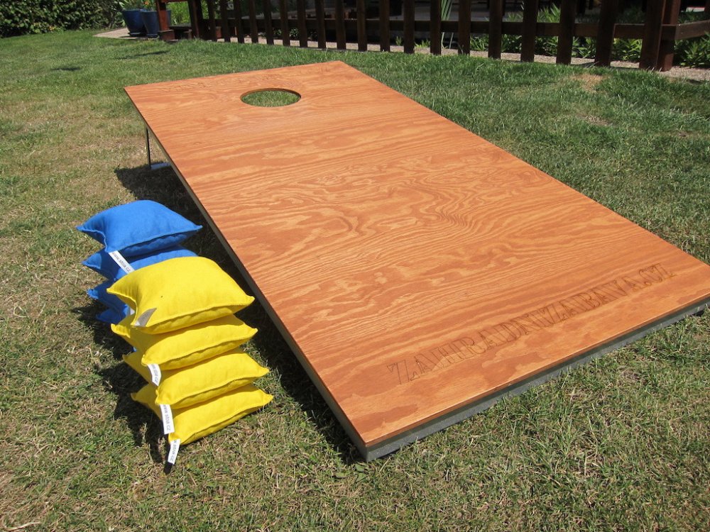 Základní informace Cornhole - jedna z nejpopulárnějších her v USA. V exkluzivním provedení - lakovaná konstrukce, gravírovaná deska, kukuřičné sáčky. Cornhole sada obsahuje Jedna hrací deska - kovová konstrukce (konstrukce je lakována základovou barvou a vrchním lakem) a vrchní dřevěná deska (vodovzdorná překližka - namořená). Hrací deska má rozměry: 120x60cm. 8 házecích sáčků - čtyři od každé bar...