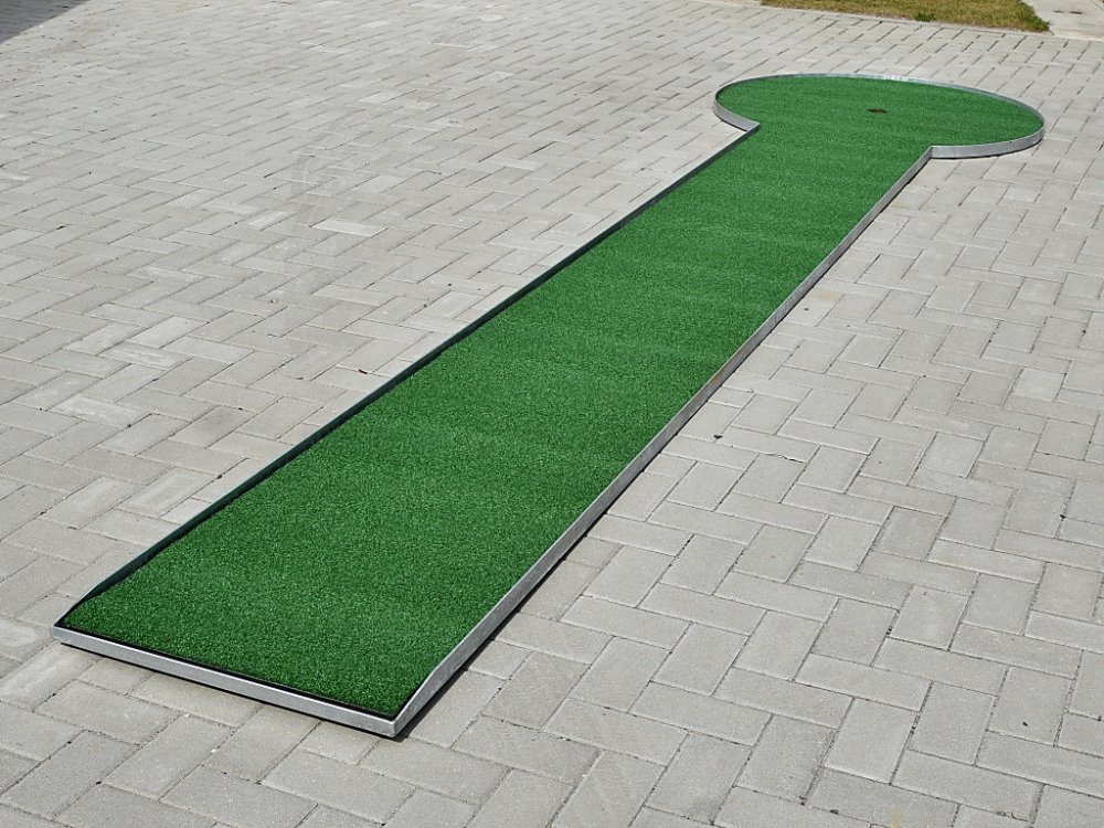Základní informace Rozměry minigolfové dráhy: délka 5m, šířka 0,6m, průměr kruhu 1,2m. Snadno přemístitelná - dráha je složena ze dvou [2,5metrových] dílů. Dráhu lze po malých úpravách přichytit například do dlažby. V ceně minigolfové dráhy: 1x minigolfová hůl "profi" - délka 90cm, 2x minigolfový míček - tvrdý a měkký. Konstrukce a váha Konstrukce dráhy: žárové zinkování (prášková barva dle stupni...