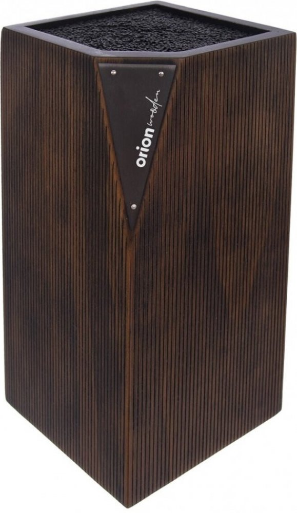 Podrobnosti o produktu OR540585 Hranatý designový dřevěný stojan WOODEN na nože s plastovými štětinami k uložení kuchyňských nožů i nůžek.