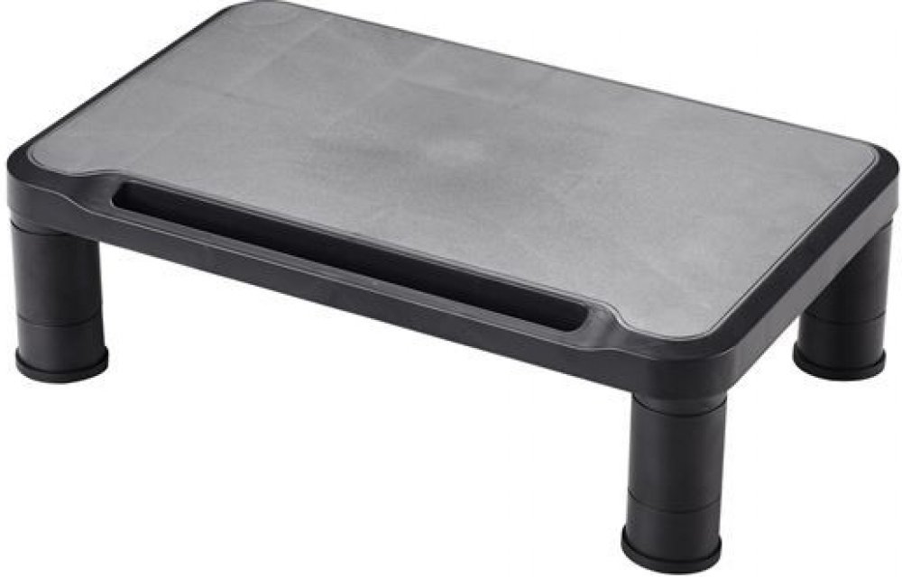 Plastový stojan na monitor Q-Connect nastavitelný do 3 různých výšek Stojan má přední slot pro uložení telefonu / tabletu, případně psacích potřeb Rozměry odkládací desky: 38 x 24 cm Možno nastavit na …