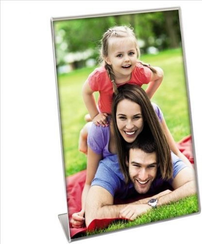 Akrylový rámeček a stojánek Hama Picture World Frame Acryl Clear Transparent Vertical s „eLkovým“ tvarem slouží pro