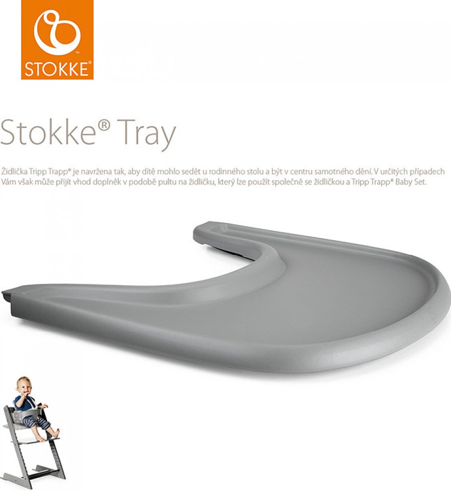 Stokke Tripp Trapp Tray Pultík se perfektně hodí na rychlé krmení nebo pokud nemáte u Vašeho stolu dostatek místa. Stokke pult se připevňuje na Stokke Baby Set (prodává se samostatně). Kompatibilní se všemi Baby Sety (s výjimkou americké a australské verze). Vyroben z materiálu, který se snadno udržuje. Je vhodný pro děti od 6 měsíců do 3 let.