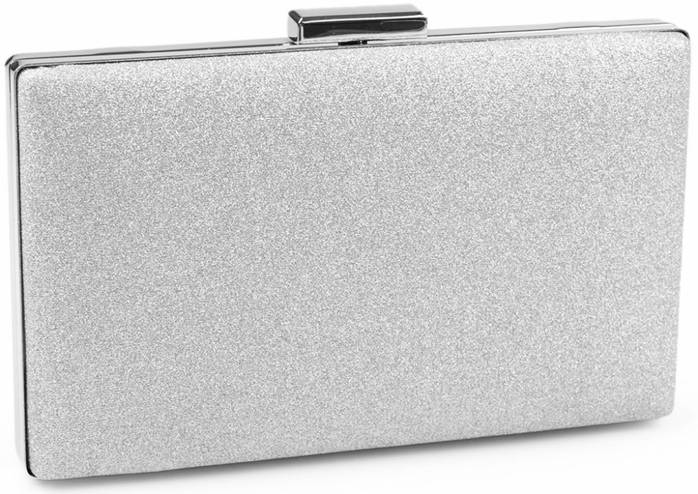 Luxusní dámská stříbrná malá společenská kabelka psaníčko s glitry se jemně třpytí. Stříbrná kabelka psaníčko má lesklé zapínání. Kovový rámeček je po celém obvodu. Větší stříbrné psaníčko je vyztužené. Součástí stříbrné kabelky psaníčka je dlouhý odnímatelný řetízkový popruh přes rameno jako crossbody. Plesové stříbrné psaníčko můžete vzít do ruky. Luxusní stříbrné psaníčko je vhodné pro nošení n...