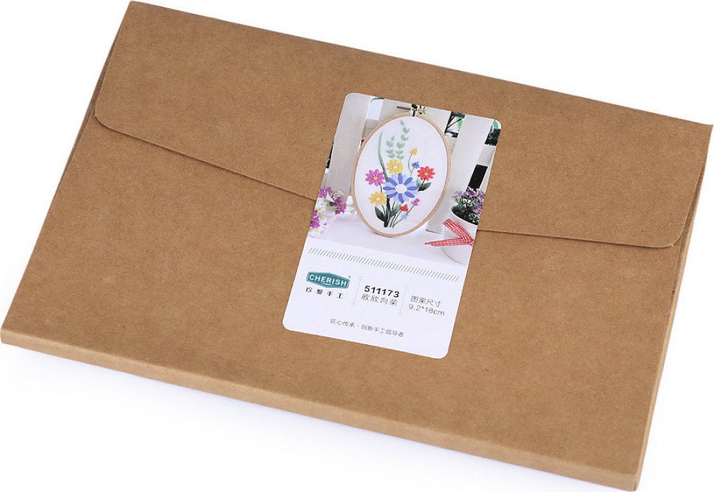 Sada na vyšívání, díky které vytvoříte krásné obrázky květin. Vyšívá se na potištěnou látku s pomocí muliny.