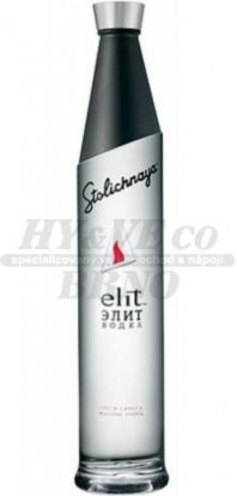 Ultra prémiová, lotyšská vodka Elit lahvi o objemu 0,7l. Jedná se o dokonale jemnou vodku, to nejlepší co kdy bylo vyrobeno společností Stolichnaya. Tajemství její chuti a stylu spočívá v použití té nejkvalitnější ozimé pšenice, křištálově čisté vody a čtyřnásobné destilace, která je zakončena čtyřfázovou filtrací přes aktivní uhlí, drcení křemen a tkaninový filtr.