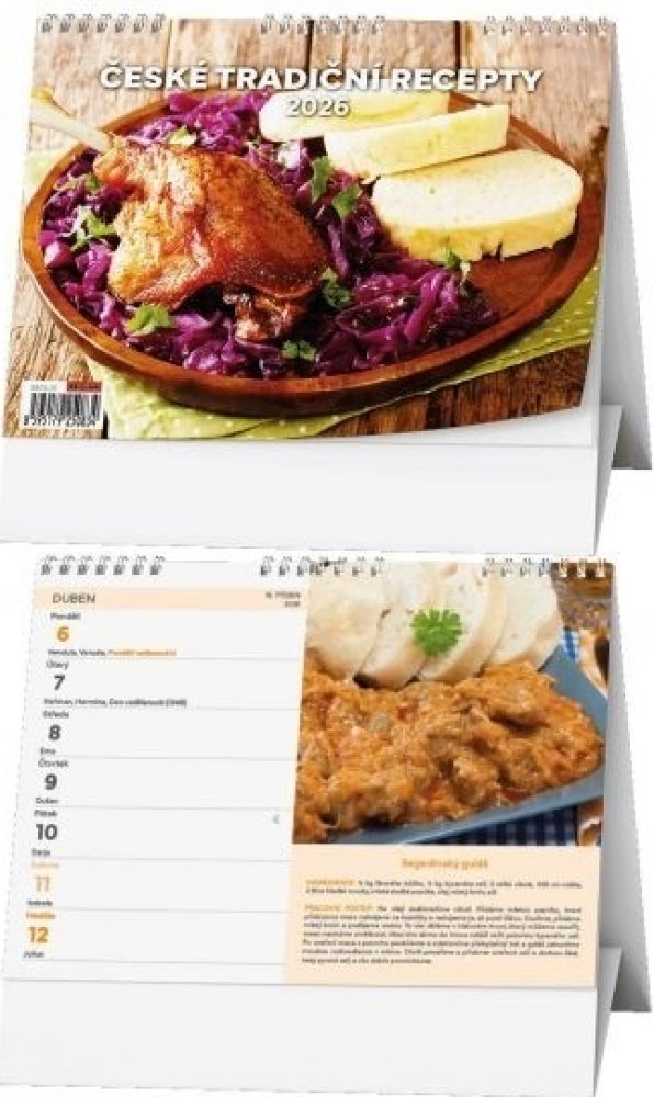 Stolní kalendář s týdenním kalendáriem a s recepty na tradiční české pokrmy.