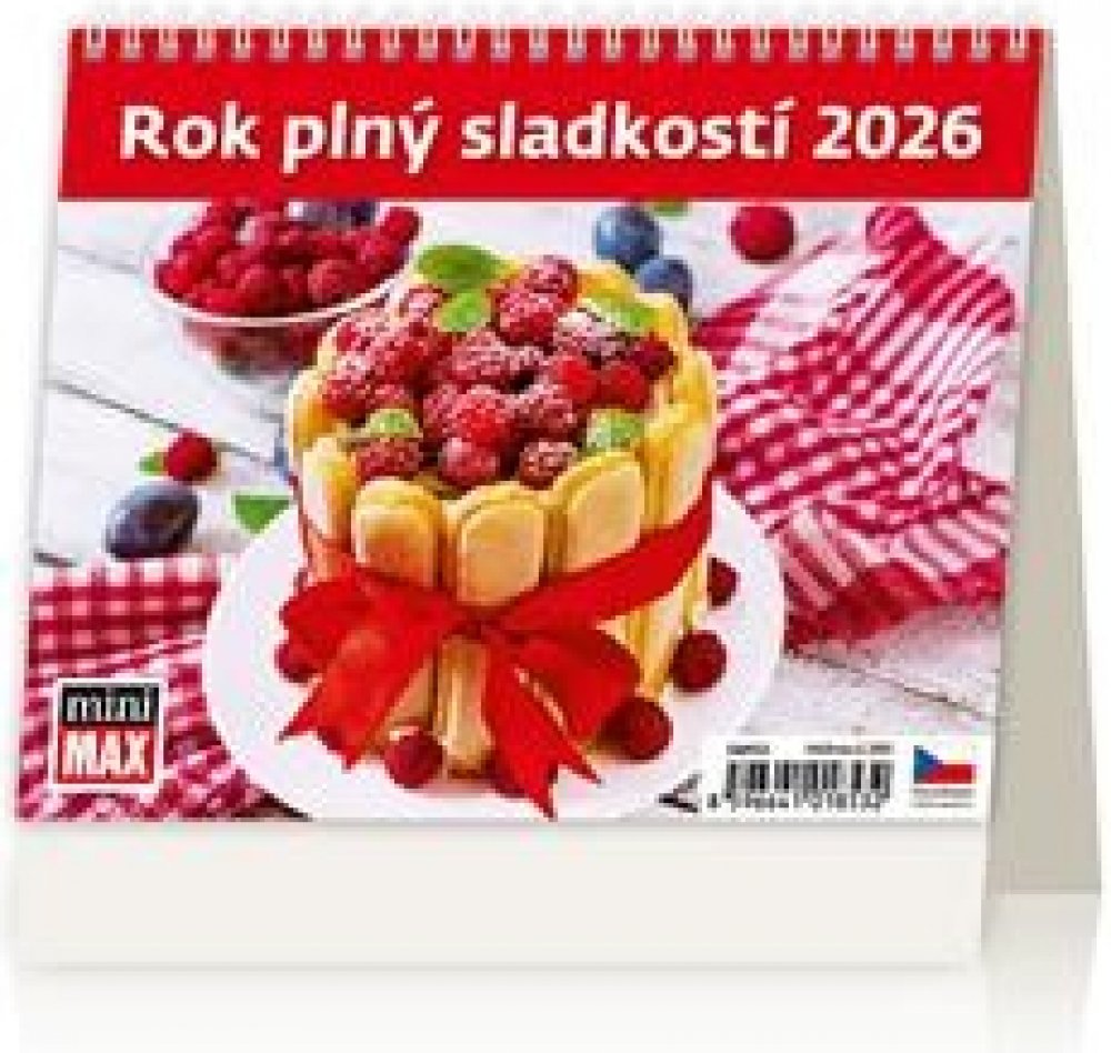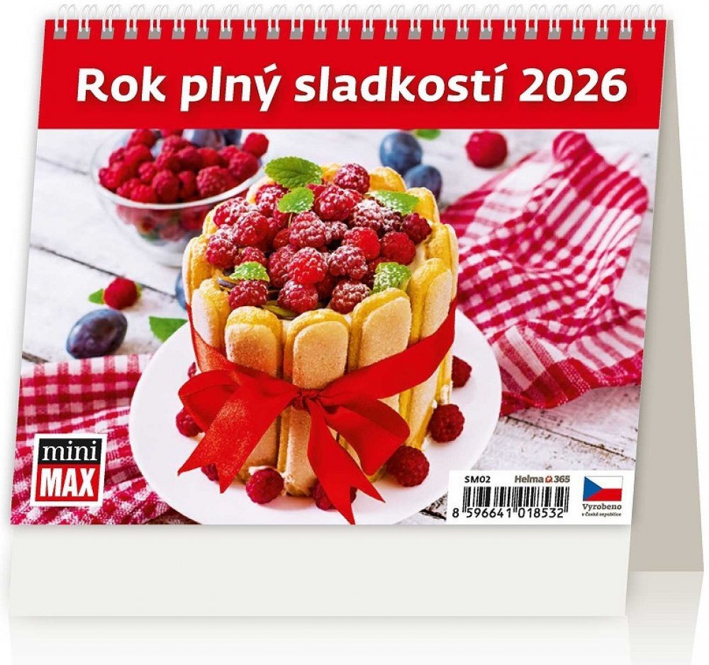 Klíčové přednosti produktu Helma MiniMax Rok plný sladkostí 2026, 17,1 × 13,9 cm Stolní kalendář HELMA pro rok 2026 je užitečnou pomůckou pro efektivní řízení času a každodenních činností Nabízí přehledný plán na celý týden Rozměry kalendáře jsou 13,9 × 17,1 cm (vך) Veškerý text je v češtině