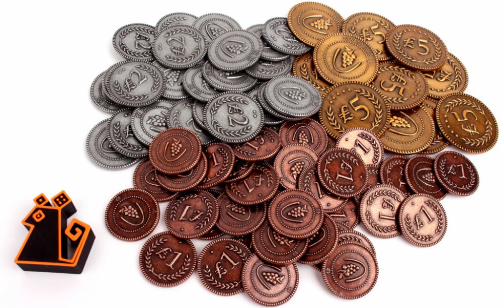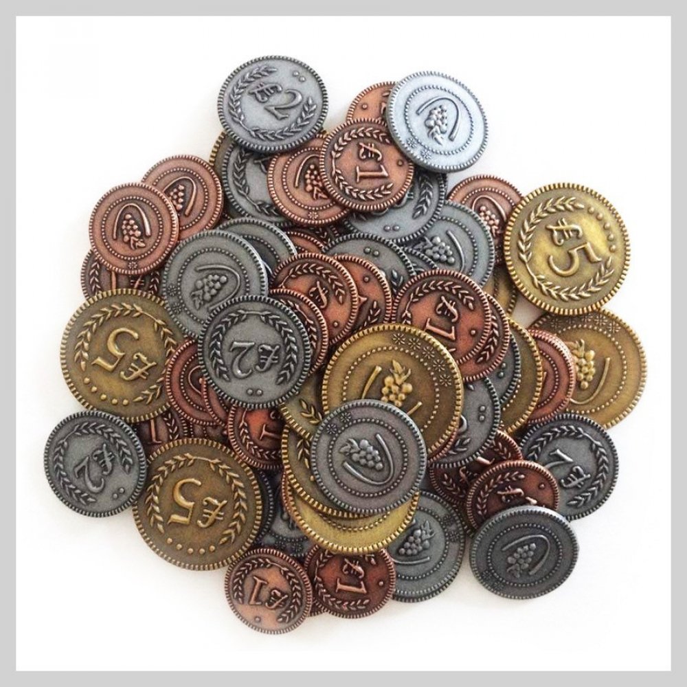 72 hrubých kovových mincí liry, které byly původně navrženy pro viticulture Tuscany ale hodí do jakékoliv hry typu euro. K dispozici je 36 mincí v hodnotě 1-liry měděné barvy, 24 stříbrných 2-lírových mincí a 12 zlatých 5-lírových mincí.
