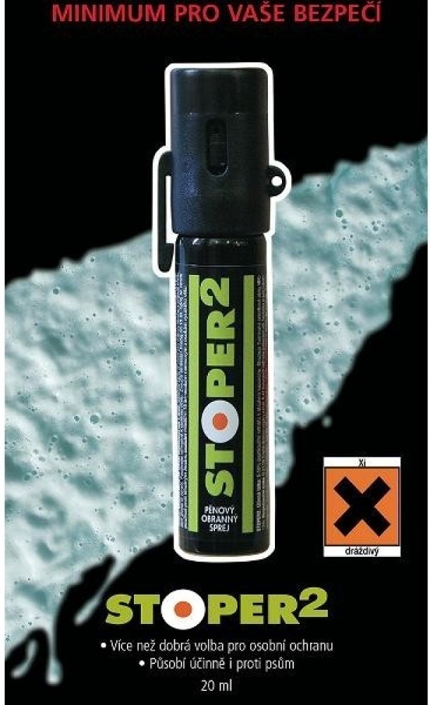 STOPER2 je tak je tak účinný, že jedním dobře mířeným zásahem do obličeje může zastavit jakéhokoliv útočníka. Sprej obsahuje paprikový extrakt s vysokým podílem kapsaicinoidů* zajišťující okamžitý účinek na zasažené sliznice: dočasné oslepení, dušnost, dráždivý kašel a silné pálení pokožky. Má dosah 1,5 až 3 metry (podle velikosti spreje a povětrnostních podmínek), umožňuje se vyhnout přímému kontaktu s útočníkem.