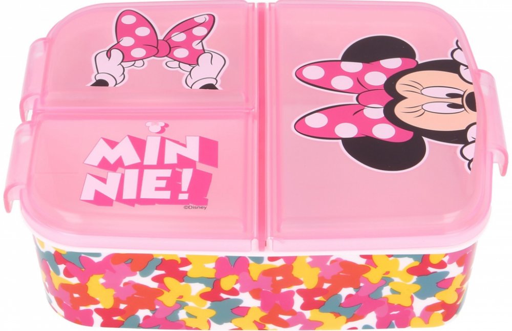 Myška Minnie moc dobře ví, co je hlad. Proto si připravila moc pěkný svačinový box pro holčičky. Svačinový box má tři přihrádky, kde je jeden větší prostor na hlavní svačinku a dva menší na ovoce a dobrůtku, která nesmí chybět. Děti si jej mohou vzít do parku, přírody, do školy nebo na výlet. Vyroben je z odolného, zdravotně nezávadného materiálu, odolá i náhodným pádům a nárazům při každodenním p...