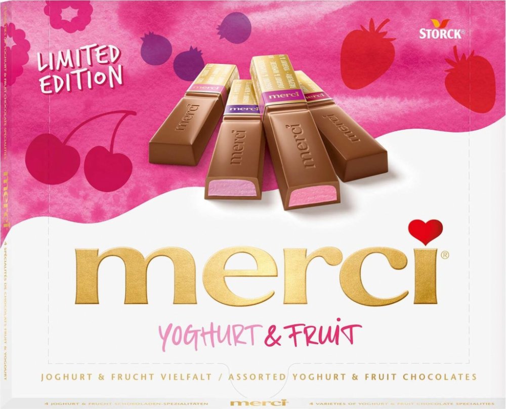 Cukr, rostlinné tuky (palma, bamba), sušené plnotučné mléko, konzervovaná hruška, máslo, sušené odstředěné mléko, mleté lískové ořechy, mléčný cukr, emulgátor mléčného mléka, emulgátor lecitin (SOY), mleté mandle, příchutě, sůl. OSTŘÍK, ALMOND, PEANUT, OSTATNÍ OŘECHY A VAJEC INCL. JOGURTOVÝ PRÁŠEK (4,5%), KRÉMOVÝ PRÁŠEK, maltodextrin, koncentrované jahodové pyré, emulgátor, koncentrovaný lecitin, šťáva z višní, koncentrovaná šťáva z mučenky, broskvové pyré, okyselující kyselina citronová, barvící mrkvový koncentrát.