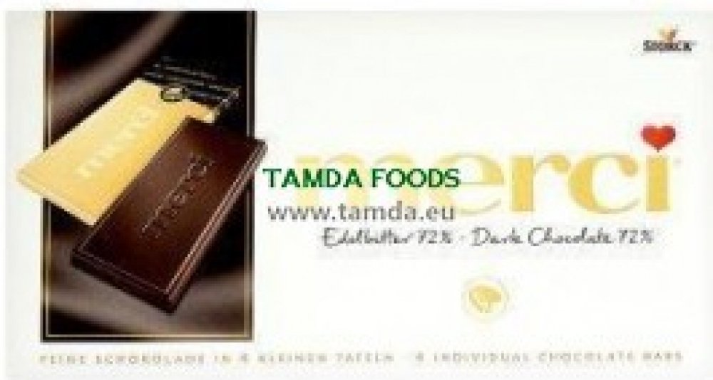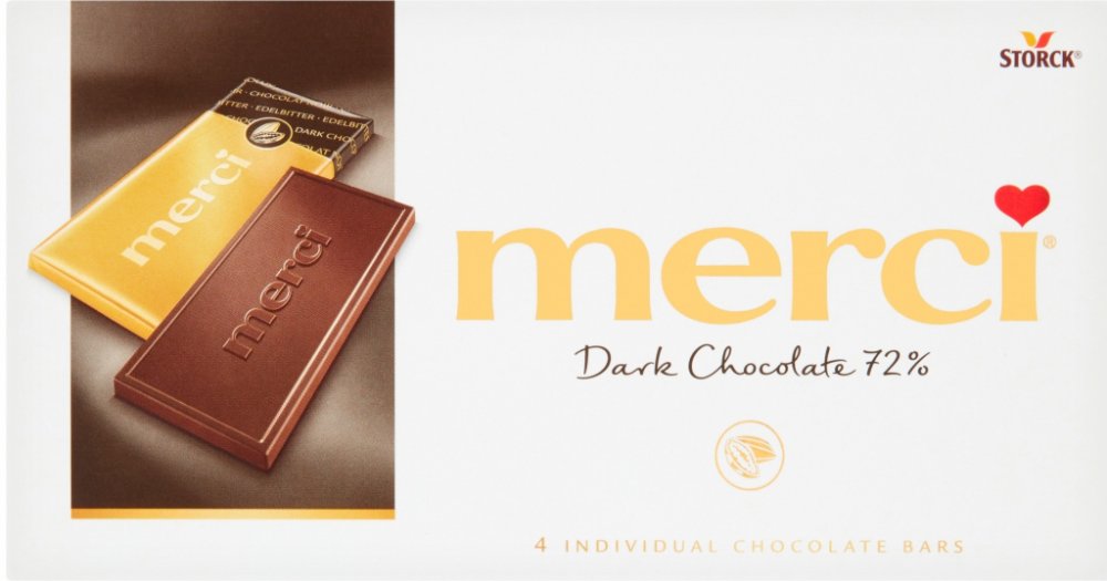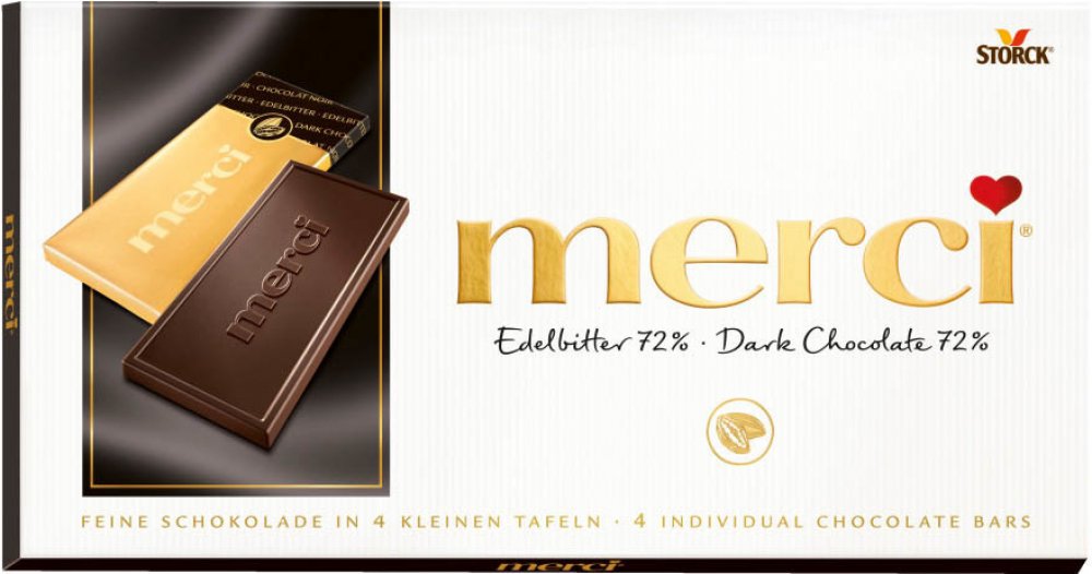 Vyzkoušejte novou příchuť z portfolia merci tabulkových čokolád. Silná, jemně se rozplývající hořká čokoláda s podílem kakaa 72%. Vybalte si prémiovou čokoládu ukrytou v originálním obálkovém balení, balenou ve zlatě vždy po 4 malých čokoládách. Každá zvlášť vás pohladí po duši i na jazyku.