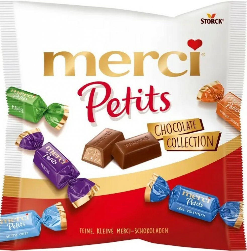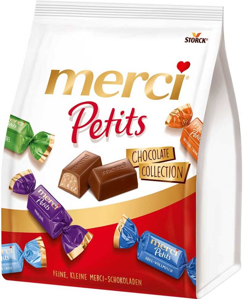 Merci Petits jsou malé, ušlechtilé Merci čokolády nejoblíbenějších druhů Merci, kousek po kousku jednotlivě balených. Vybrané ingredience té nejvyšší kvality udělají z Merci velmi zvláštní čokoládovou pochoutku.