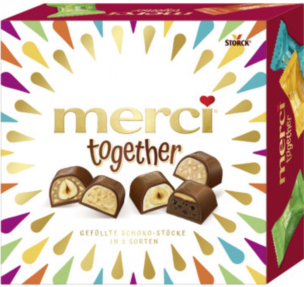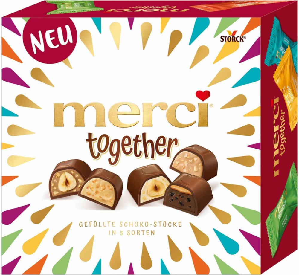 Složení: cukr, sušené plnotučné mléko (16,4 %), kakaové máslo, rostlinné tuky (palmový, bambucký, kokosový), lískové ořechy (6,9 %), kakaová hmota, laktóza, sušené podmáslí, syrovátkový výrobek, mandle (2 %), glukózový sirup, pšeničná mouka, sušené odstředěné mléko, kakaový prášek se sníženým obsahem tuku, emulgátory: sójový lecitin, mono- a diglyceridy ...
