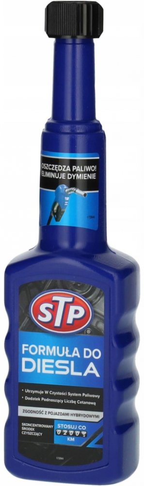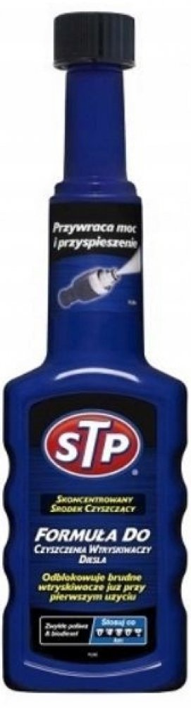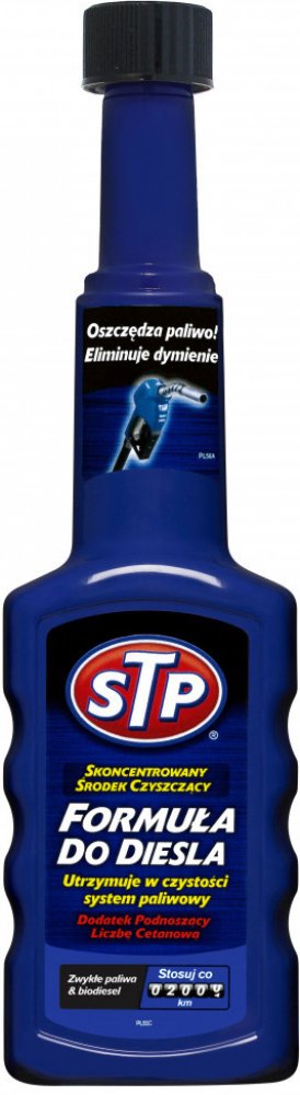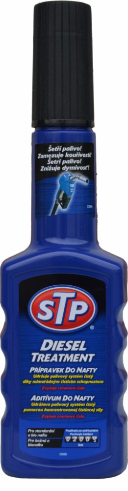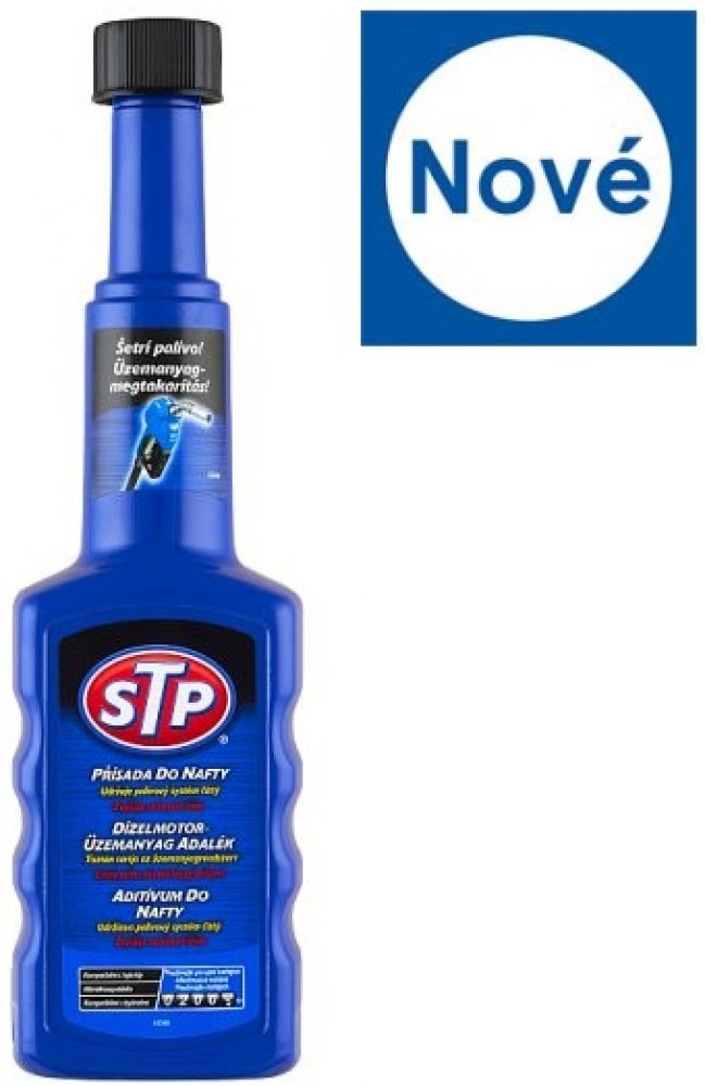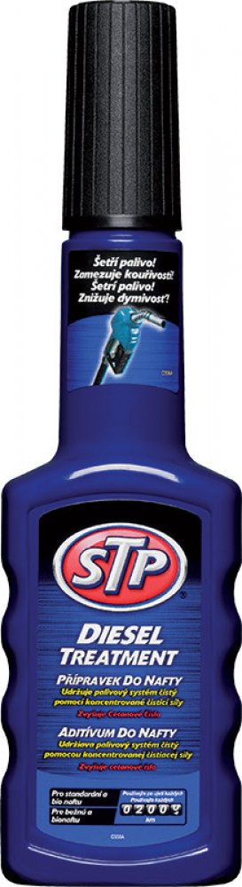 Přípravek je vyroben k udržení špičkového výkonu motoru tím, že zabraňuje tvorbě škodlivých nánosů na klíčových částech motoru. Při pravidelném používání testy prokazují 100 % kontrolu nad tvorbou nánosů ve vstřikovacích tryskách, prevence zanášení vstřikovacích trysek a ztráty paliva. Vhodný pro všechny vznětové motory, včetně DI, IDI a common rail a katalyzátory. Pravidelné používání "STP Přípravek do nafty" pomáhá: Šetřit palivo, neboť udržuje palivový systém čistý bez škodlivých usazenin. Bojovat proti korozi v palivovém systému. Snižovat emise, kouřivost hlučnost. Zlepšovat startování za studena díky zvýšení cetanového čísla. Přednosti nového balení STP: Zúžené hrdlo pro snadnější nalévání. Vyšší koncentrace = ošetří až o 10 litrů paliva víc. Obsah lahvičky ošetří 50-60l nádrže. Je vhodné používat vždy po ujetí 2000km. Vhodný pro všechny vznětové motory, včetně DI, IDI a common rail a katalyzátory.