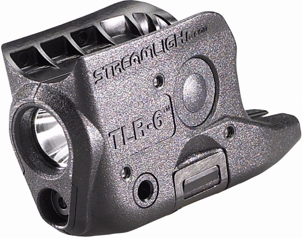 svítilna Streamlight TLR-6 Moderní subkompaktní pistole jsou zajímavou volbou, leckoho ale může odradit absence railu na svítilnu. S taktickou svítilnou Streamlight TLR-6 ve verzi pro Glock 42 a Glock 43 to není žádný problém. Parabolický reflektor svítilny soustředí světelný tok o síle 100 lm do centra, dostatečný přehled ale budete mít i o okrajích osvětlené plochy. Červený laser o vlnové délce 640-660 nm podstatně zvýší vaši úspěšnost při míření. Svítit lze bílým světlem a laserem naráz, i samostatně. Podvěsná svítilna na subkompaktní pistoli Streamlight TLR-6 se připíná na lučík zbraně. Připevnění i sejmutí svítilny je otázkou okamžiku. Svítilna pro Glock 42 či Glock 43 Červený laser (640-660 nm) Lze svítit bílým světlem a laserem naráz, i samostatně Snadné a bezpečné připevnění na zbraň Voděodolnost stupně IPX4 – odolné vůči stříkající vodě C4 LED technologie Obouruké ovládání