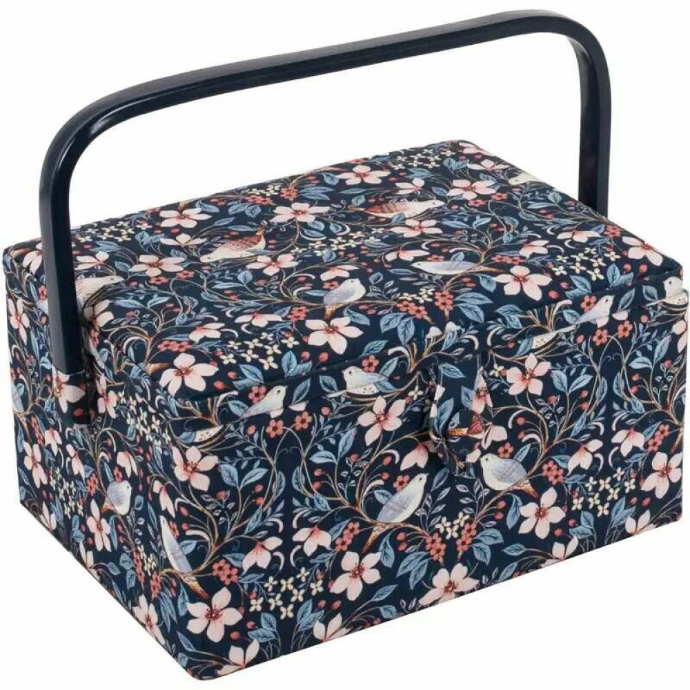 Střední košík na šití, pletení a háčkování - Ptáčci na květinách