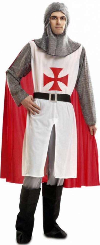 Kapuce a dlouhé rukávy jsou stříbrnočerné, tvořící dojem drátěné košile. Bílý dlouhý žaket s rozparkem v přední části má na hrudi velký červený kříž. K žaketu je přišit červený plášť. Kostým doplňují šedé kalhoty, černý pá...