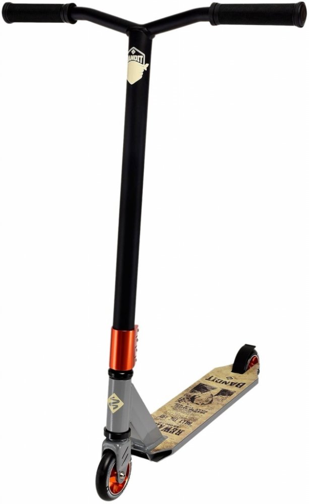 Model Bandit má vylepšený výkon, širší řídítka 54 cm a rozšířený nášlap 11 cm. Hlavové složení s vysoce kompresní technologií HIC je při skocích a tricích maximálně pevné. Ložiska ABEC 9 pro velmi hladkou jízdu. Freestyle koloběžka Street Surfing Bandit je ideální na triky a skoky, do města i do skateparku i pro cestování z jednoho místa na druhé. Je vhodná pro začínající i pokročilejší jezdce.